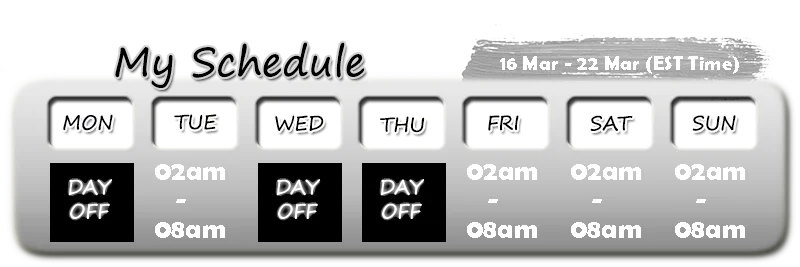 Hodnocení péra, Špinavá mluva, Flexing, Exhibicionismus, Erotický tanec, Prstění, Footfetish, Ponižování, Masturbace, Striptýz, Plácání po zadku, Zezadu, Ejakulace, Hardcore, Masáž, Olejová show, Orgasmus, Roleplay, SPH